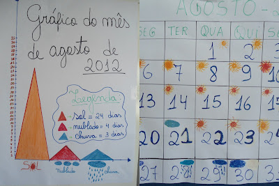 Os alunos podem criar um gráfico mensal, dizendo quantos dias teve sol, chuva, nublado, ...